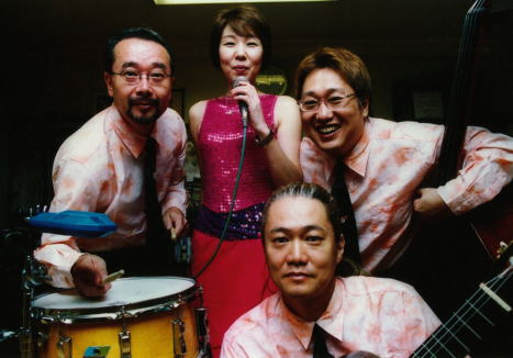 枝川淳一(Dr) 岡田ユキ(Vo) 岸真澄(Gt) 垣内裕志(B) ふぃ〜びぃ〜(犬)